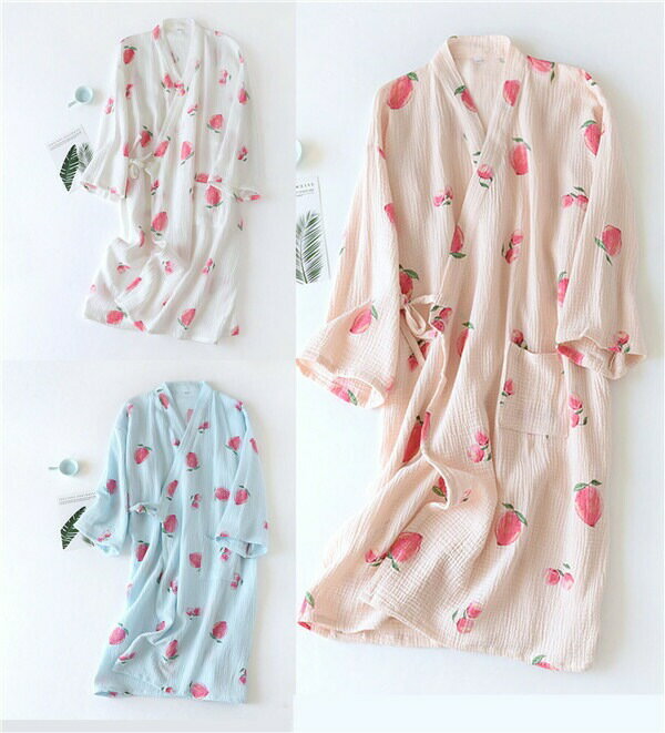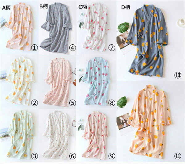 ガーゼ生地が二重構造になっているので生地と生地の間に空気の層が生まれ、通気性抜群、お風呂上りにもピッタリ!【シンプルデザイン】落ち着きのあるカラーとかわいいフルーツ柄?自分用にはもちろん家族や姉妹、お友達とお揃いやプレゼントとしてもオススメです。