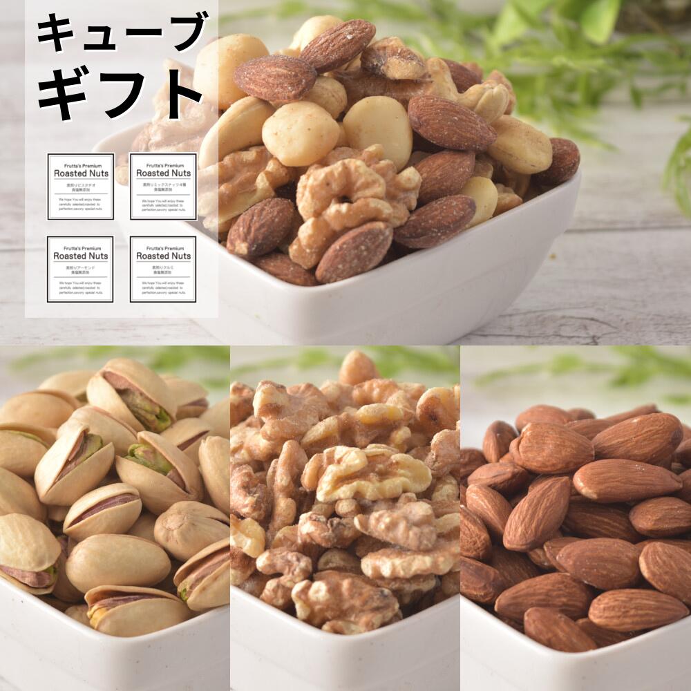 お中元 ナッツ ギフト おつまみナッツ おつまみセット 父の日ギフト ナッツギフト プレゼント Frutta`s Premium 4種 ナッツ (4個のキューブ入り) おしゃれなナッツ プレゼント ボリュームたっぷり♪ 送料無料 無塩 無添加 素焼きナッツ
