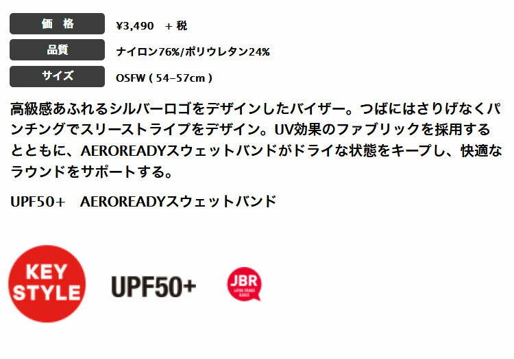 アディダス ゴルフ 22877 ウィメンズ シルバーロゴ バイザー [UPF50+ AEROREADY] (レディース)