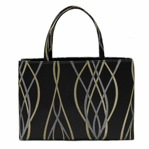 商品情報 商品名 和装サブバッグ 尾州織 ジャガードバッグ 素材 表地 ポリエステル100%裏地 綿100% カラー 主体色/ブラック 製造 日本製 サイズ 横幅 約33cm・マチ 約9cm・高さ 約24cm(持ち手除く) ご注意事項 ※生地の裁断位置により多少柄の出方が変わることがございますので、ご了承ください。