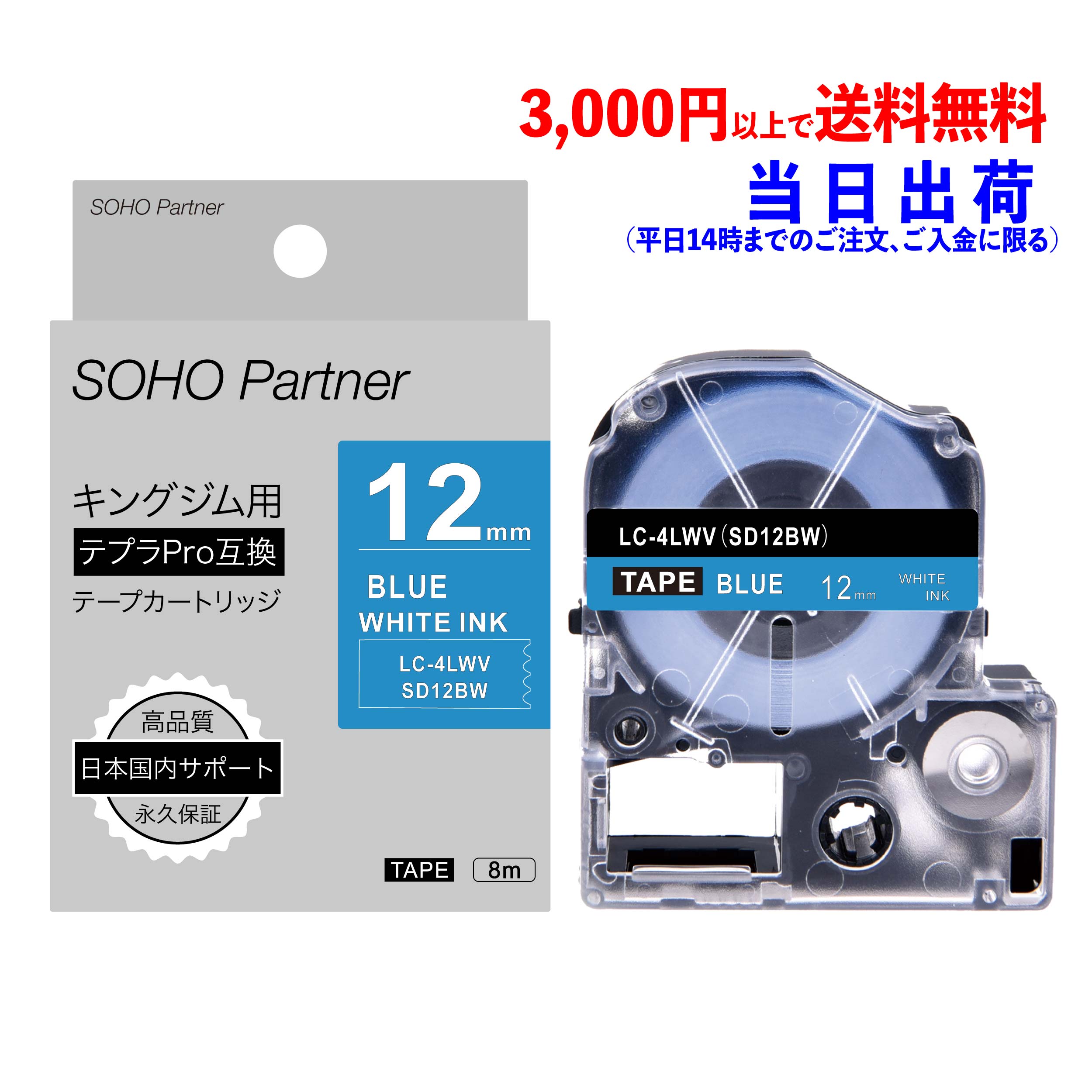 キングジム ( Kingjim ) 用 テプラ PRO ( TEPRA PRO ) 互換 強粘着 テープ カートリッジ 幅12mm 青色テープ 白色文字 長8m SH-KD12BW ( SD12BW 互換 )